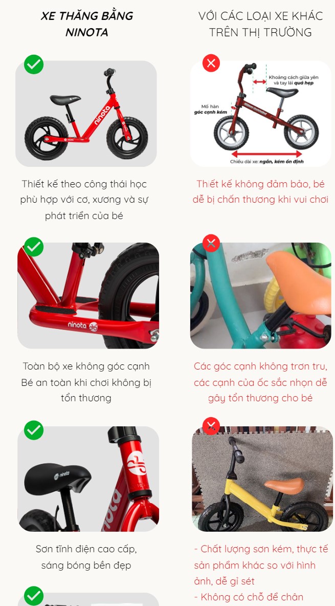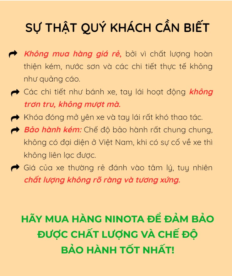 SO SÁNH XE THĂNG BẰNG NINOTA VỚI CÁC LOẠI XE THĂNG BẰNG KÉM CHẤT LƯỢNG TRÊN THỊ TRƯỜNG HIỆN NAY
